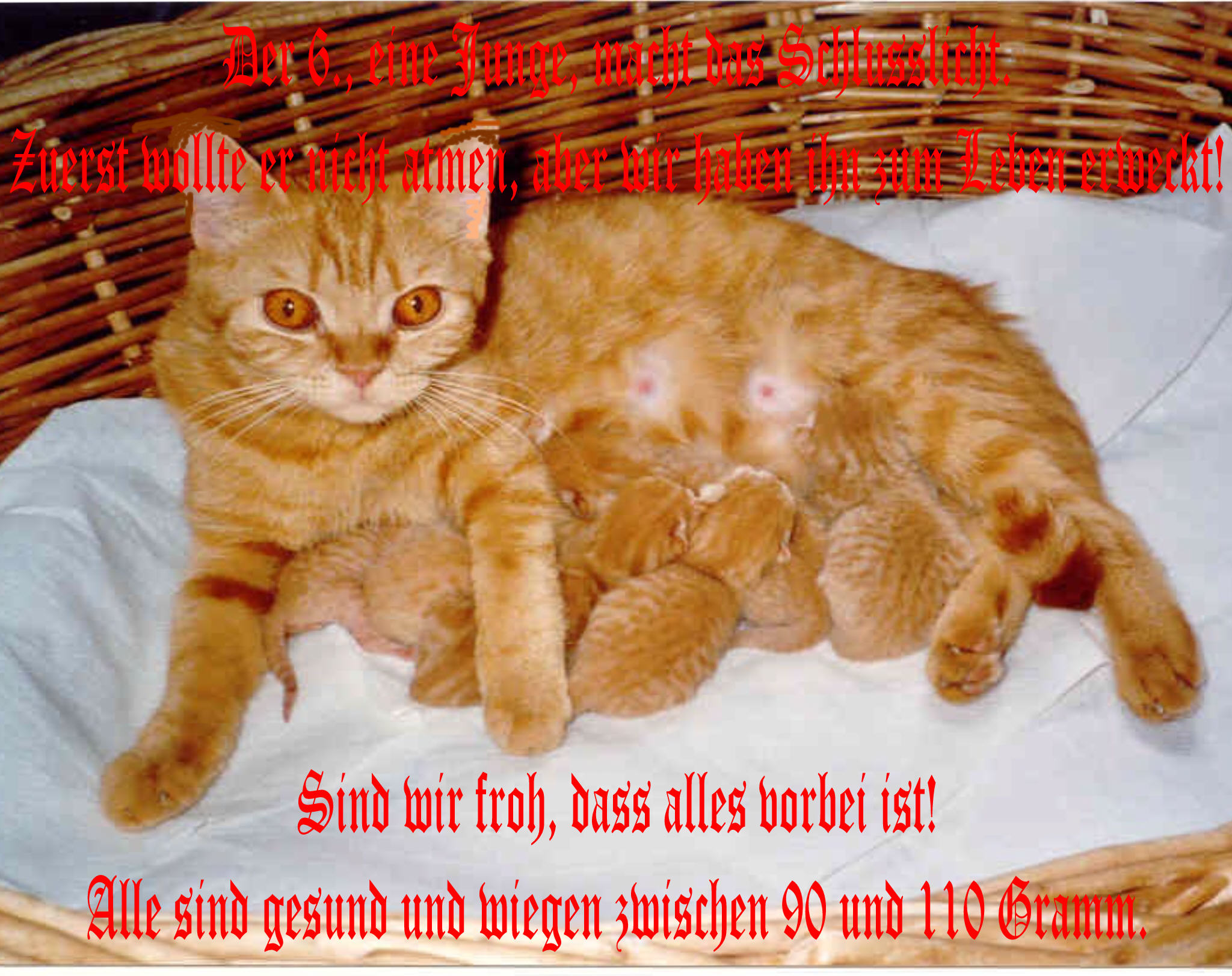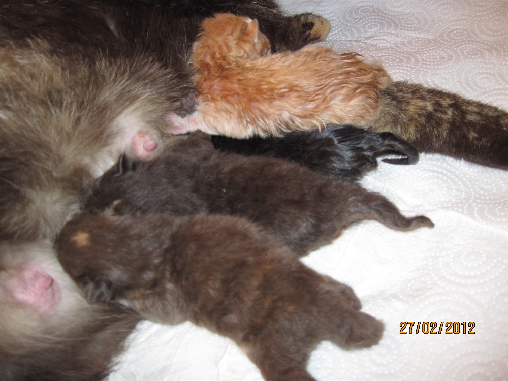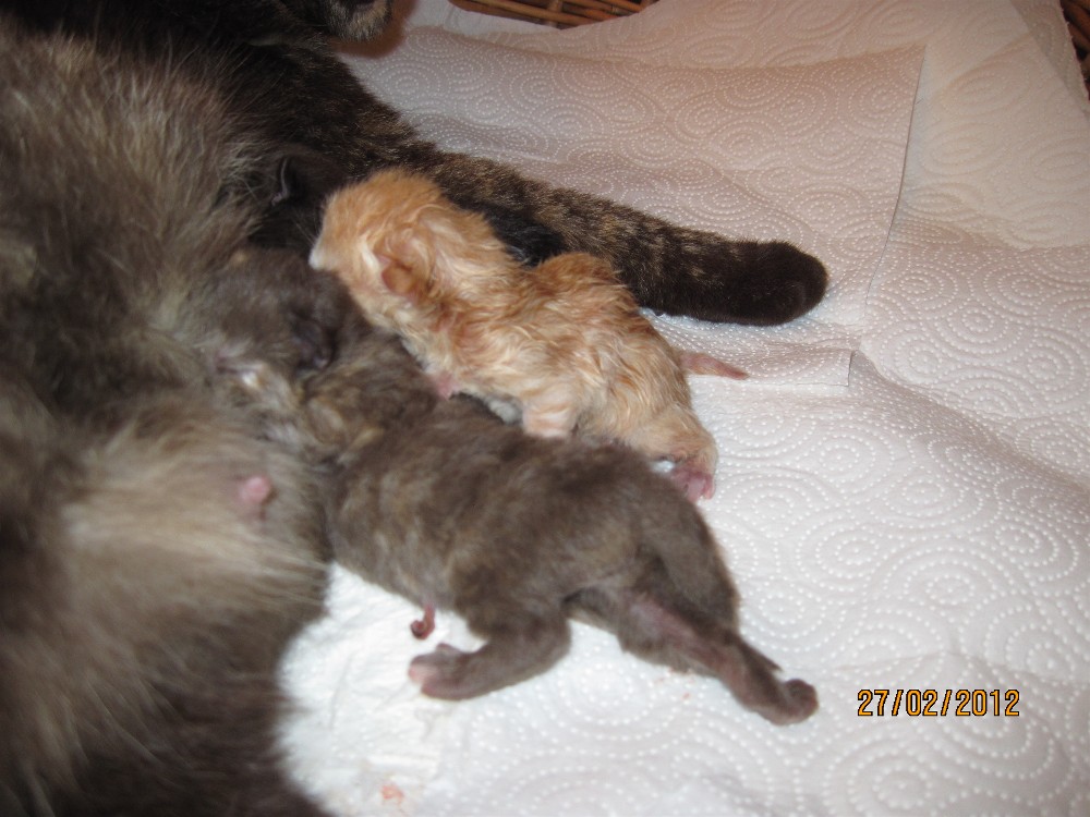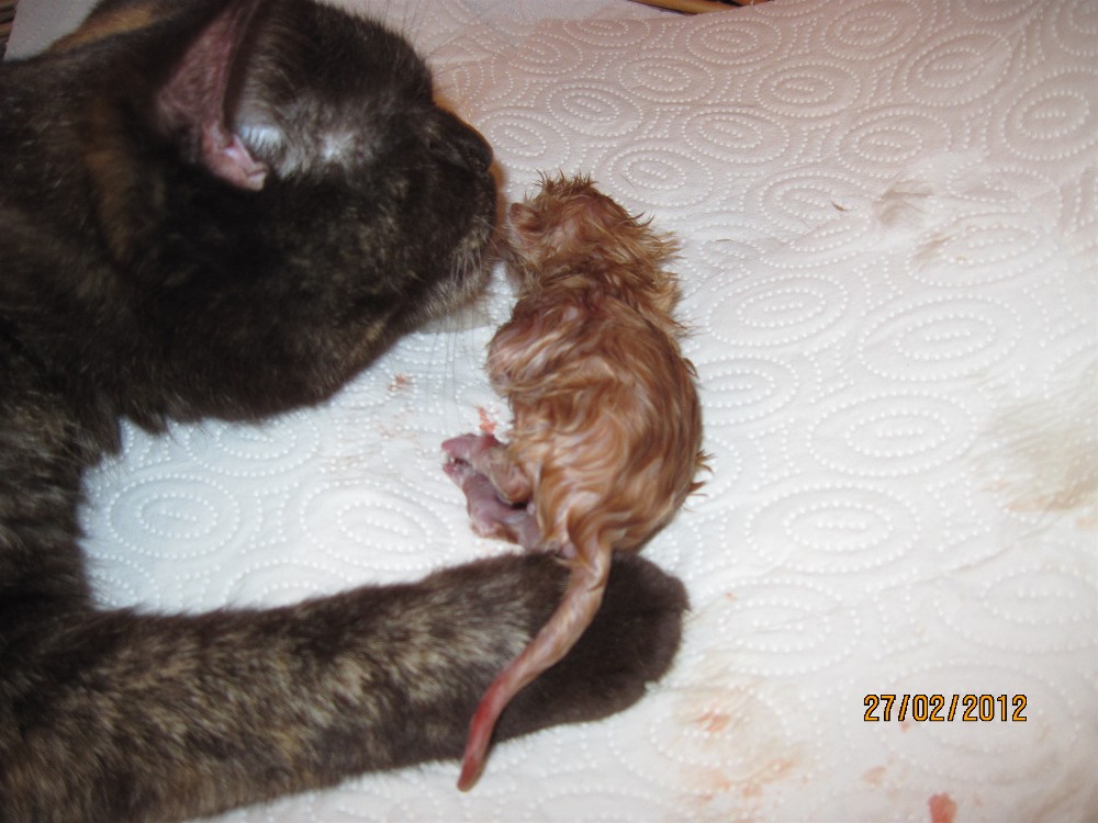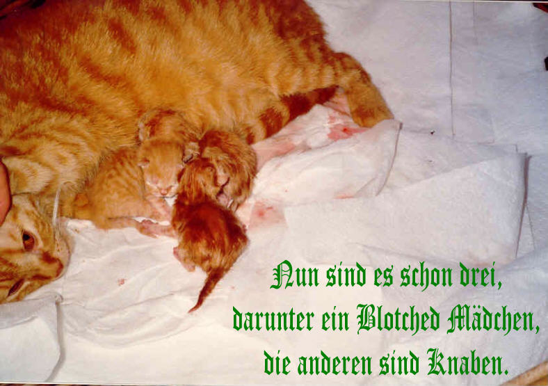 Alle Kitten sind rot. Die Geburt dauerte 2 1/2 Stunden.
