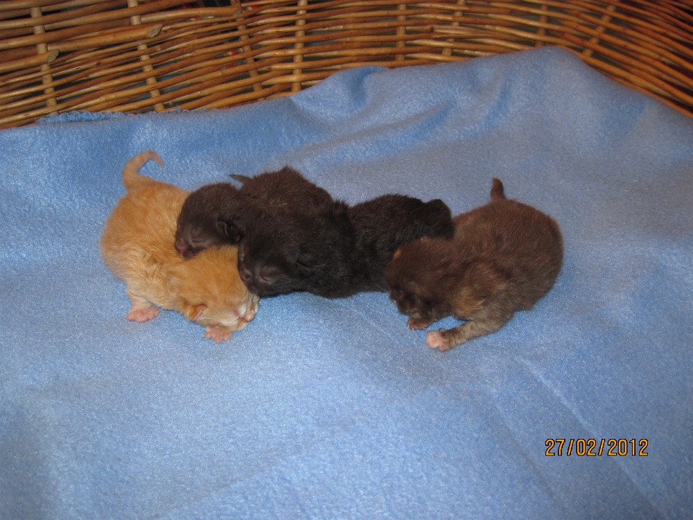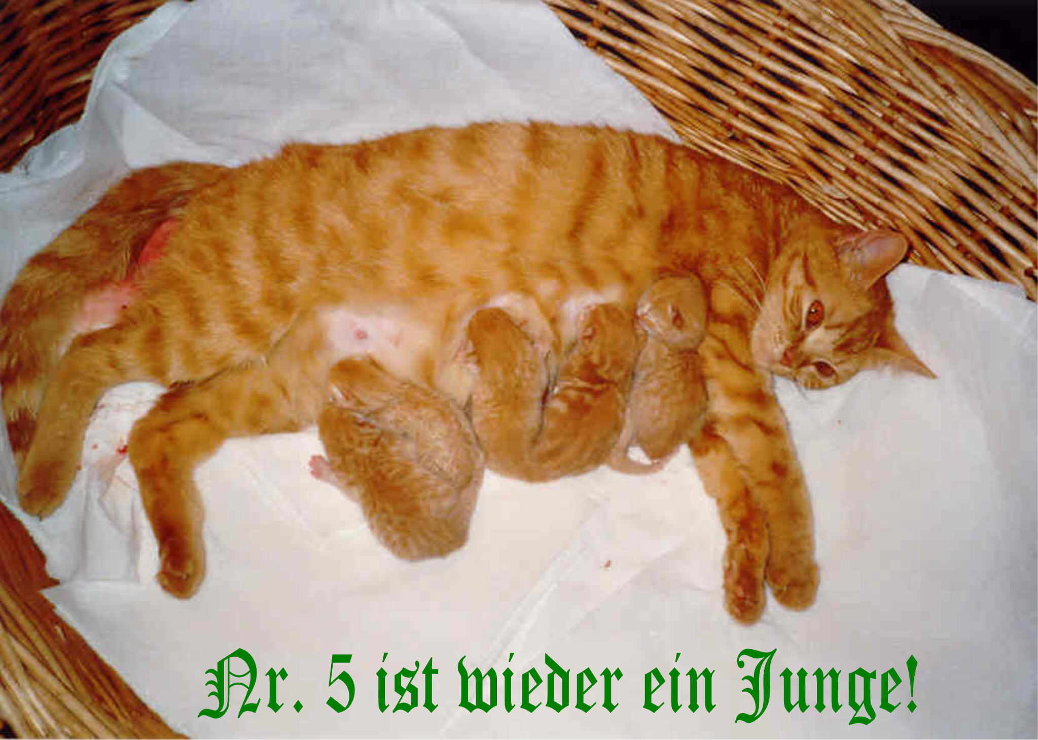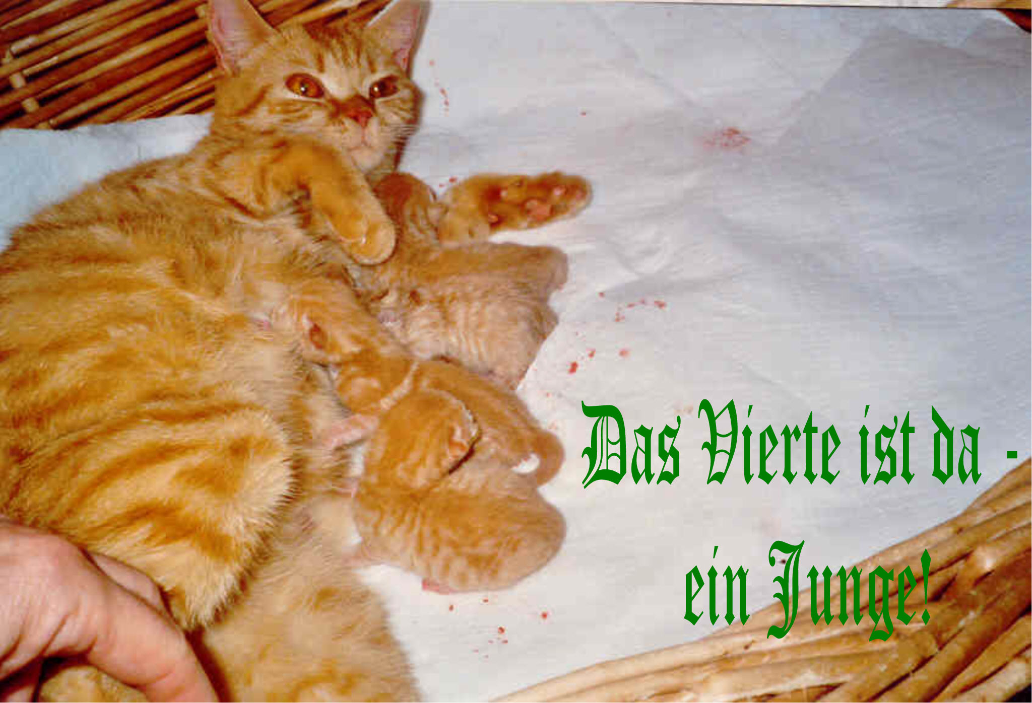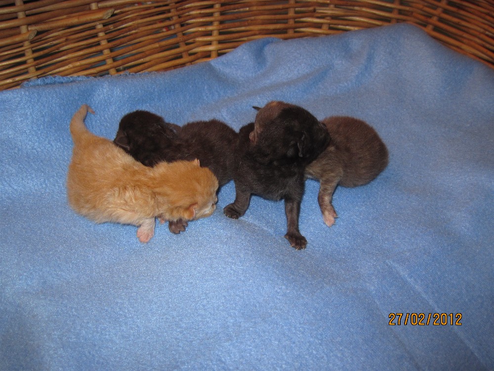 Alle Kitten sind rot. Die Geburt dauerte 2 1/2 Stunden.