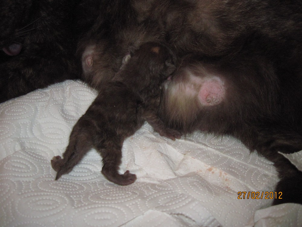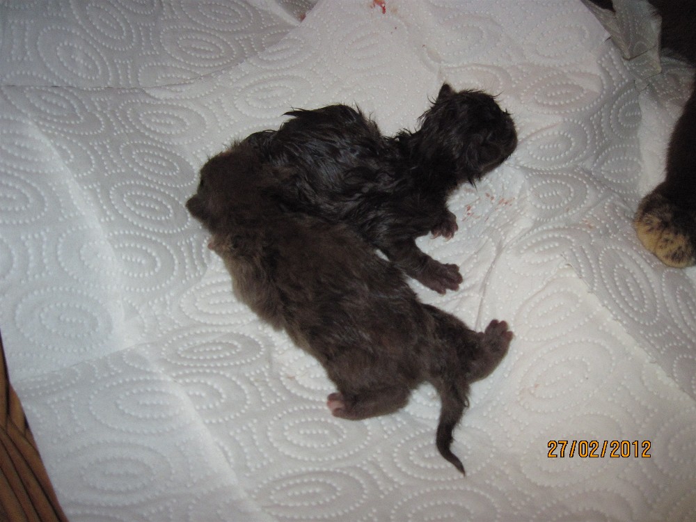 Kurz danach, im Abstand von 5 Minuten, wird ein lackschwarzer Kater geboren.