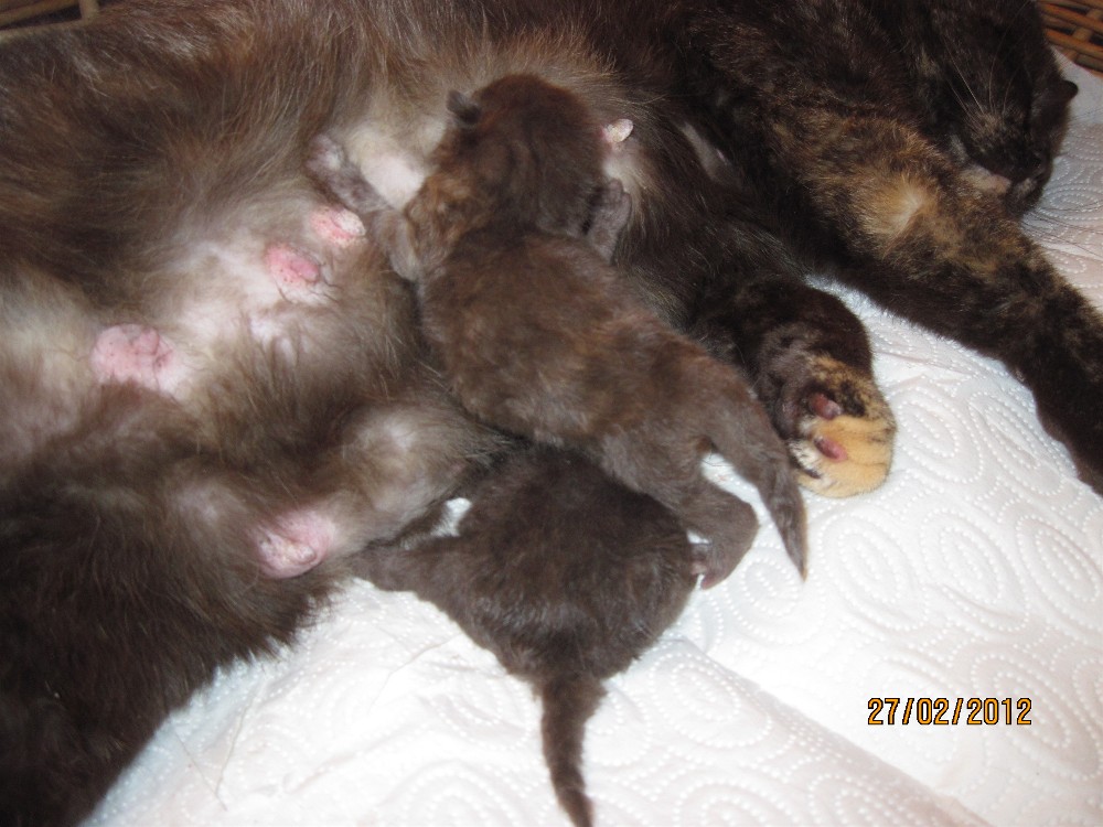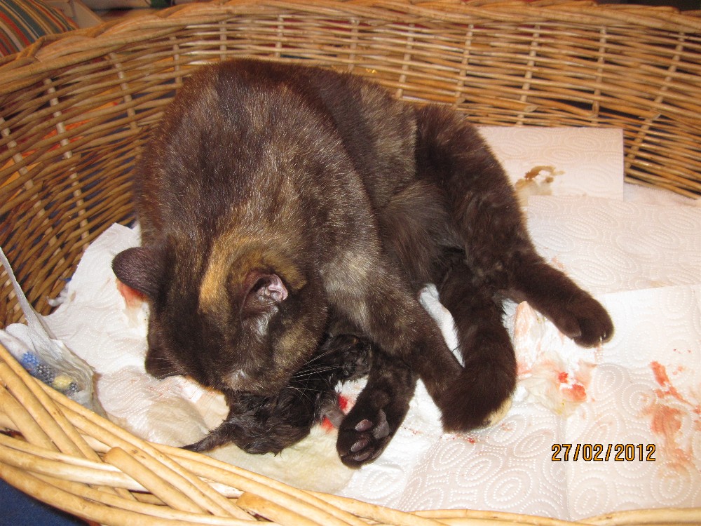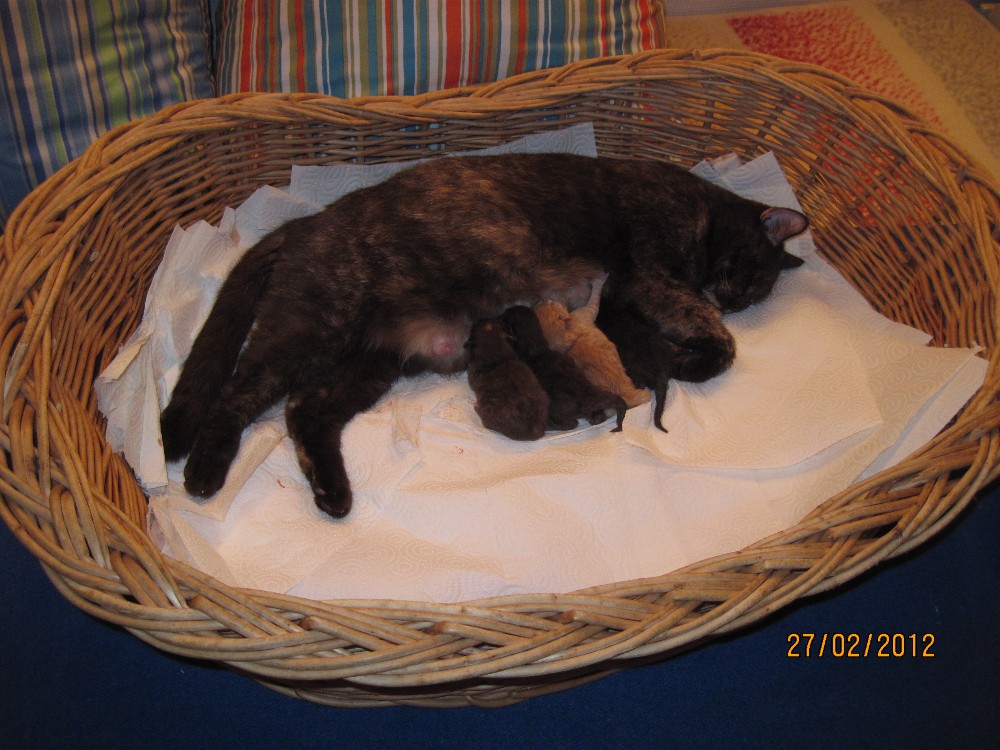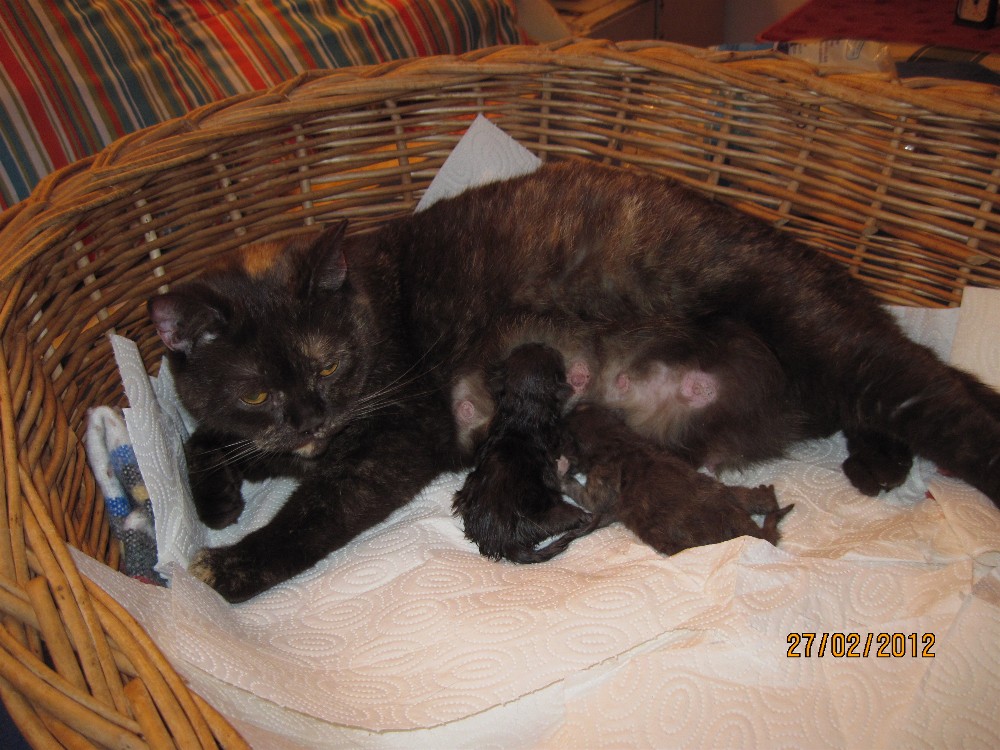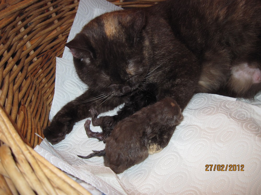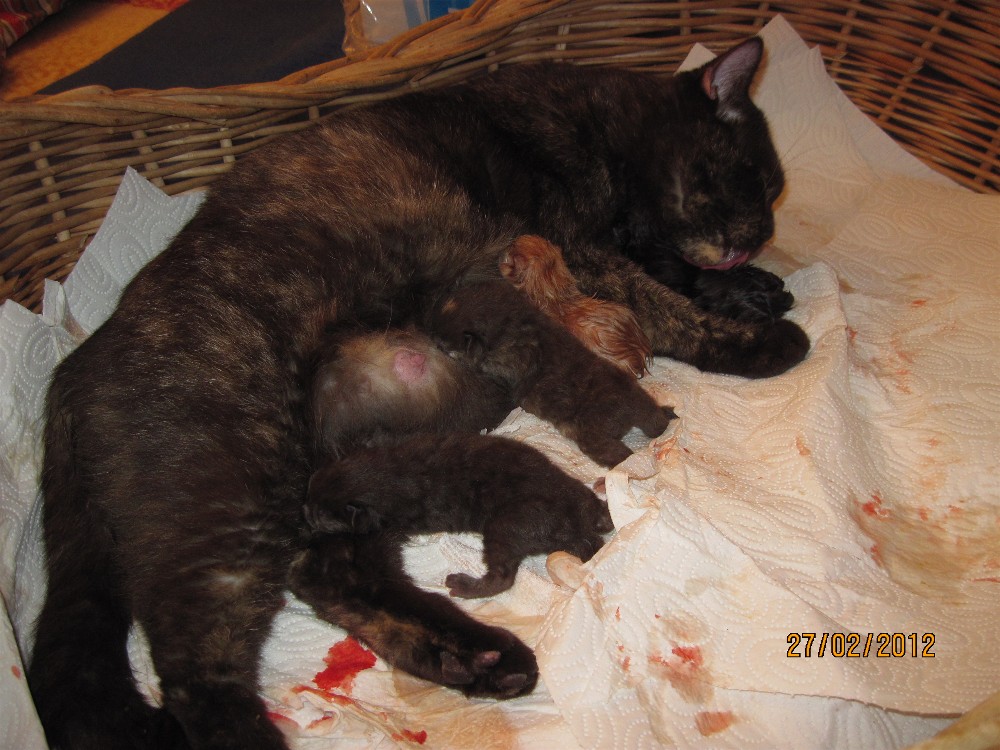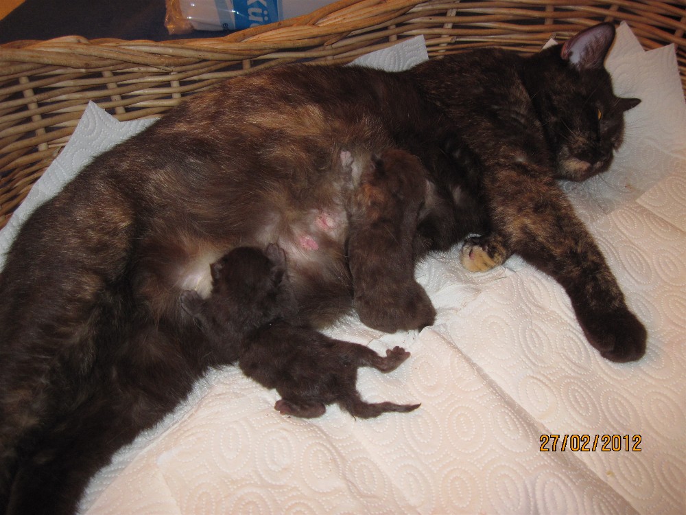 Die Katzengeburt von der chocolatetortie Katze Icona und dem Gr. Int. Ch.