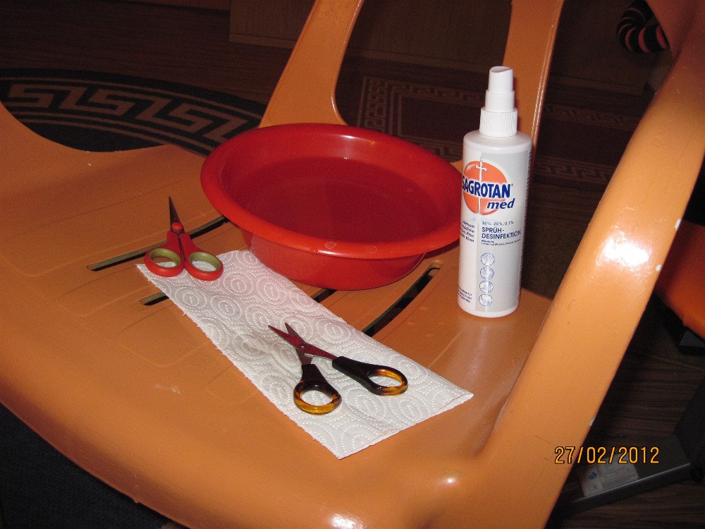 Während der Geburt schneide ich die Haare bei den Zitzen ab. Mit lauwarmem