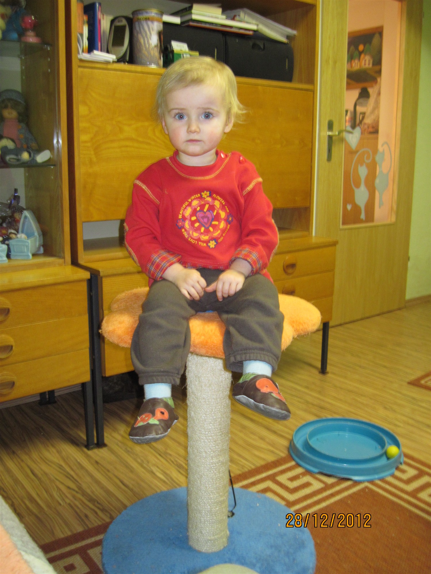 Oh, Entschuldigung, auf diesem Kratzbaum, das ist natürlich keine Katze!!!