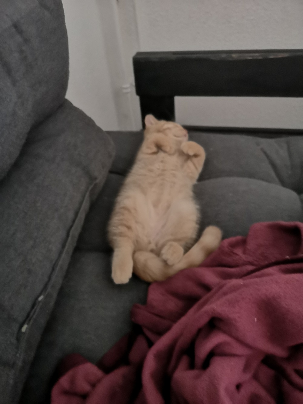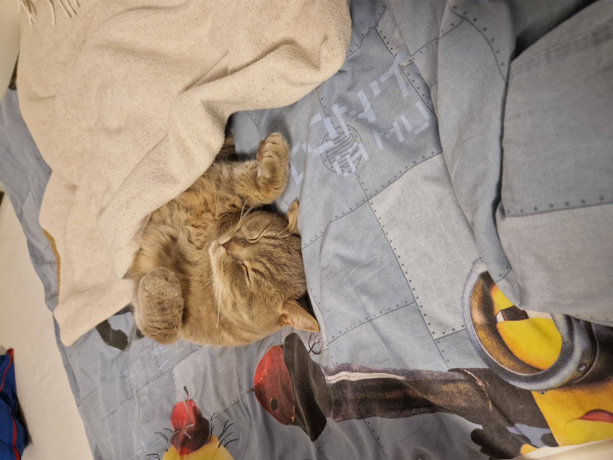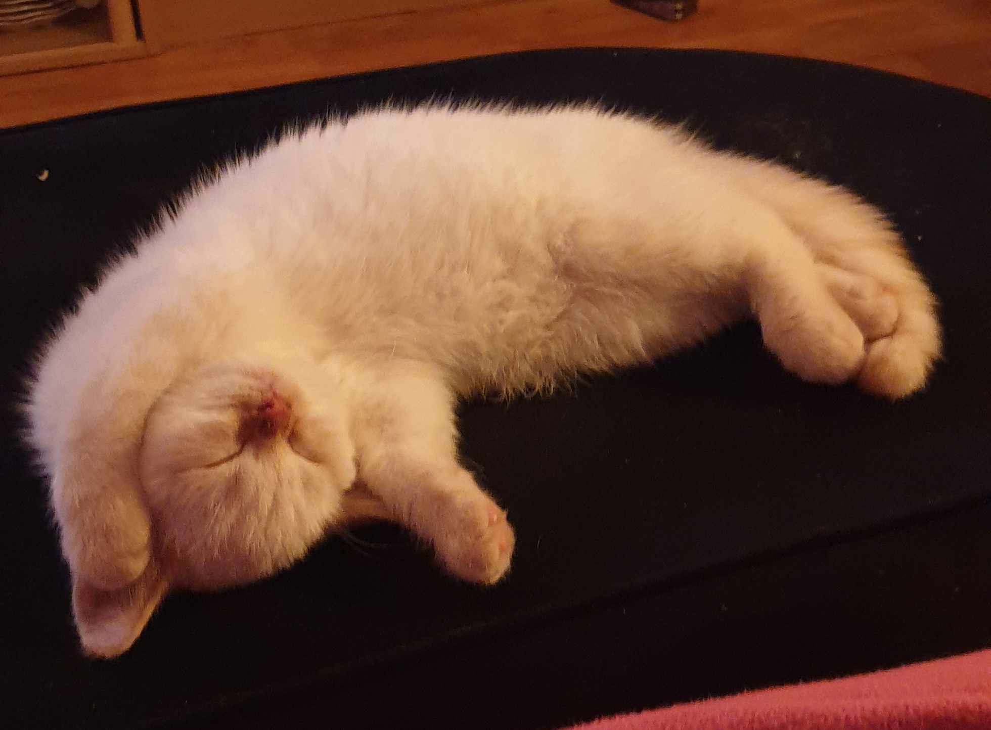 Spieleinheit ist sie nun am schlafen. Unsere andere Katze Yvie ist noch etwas