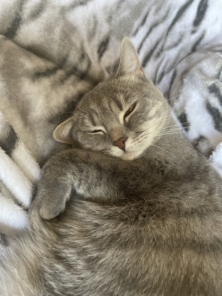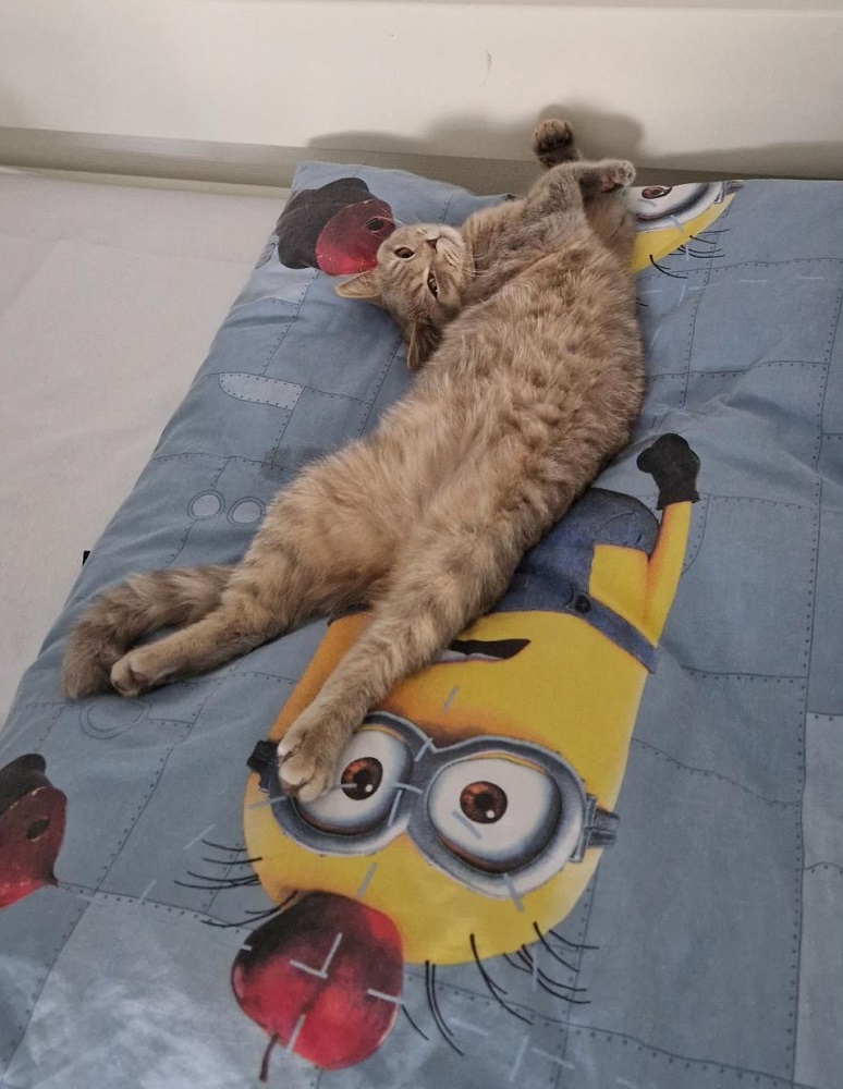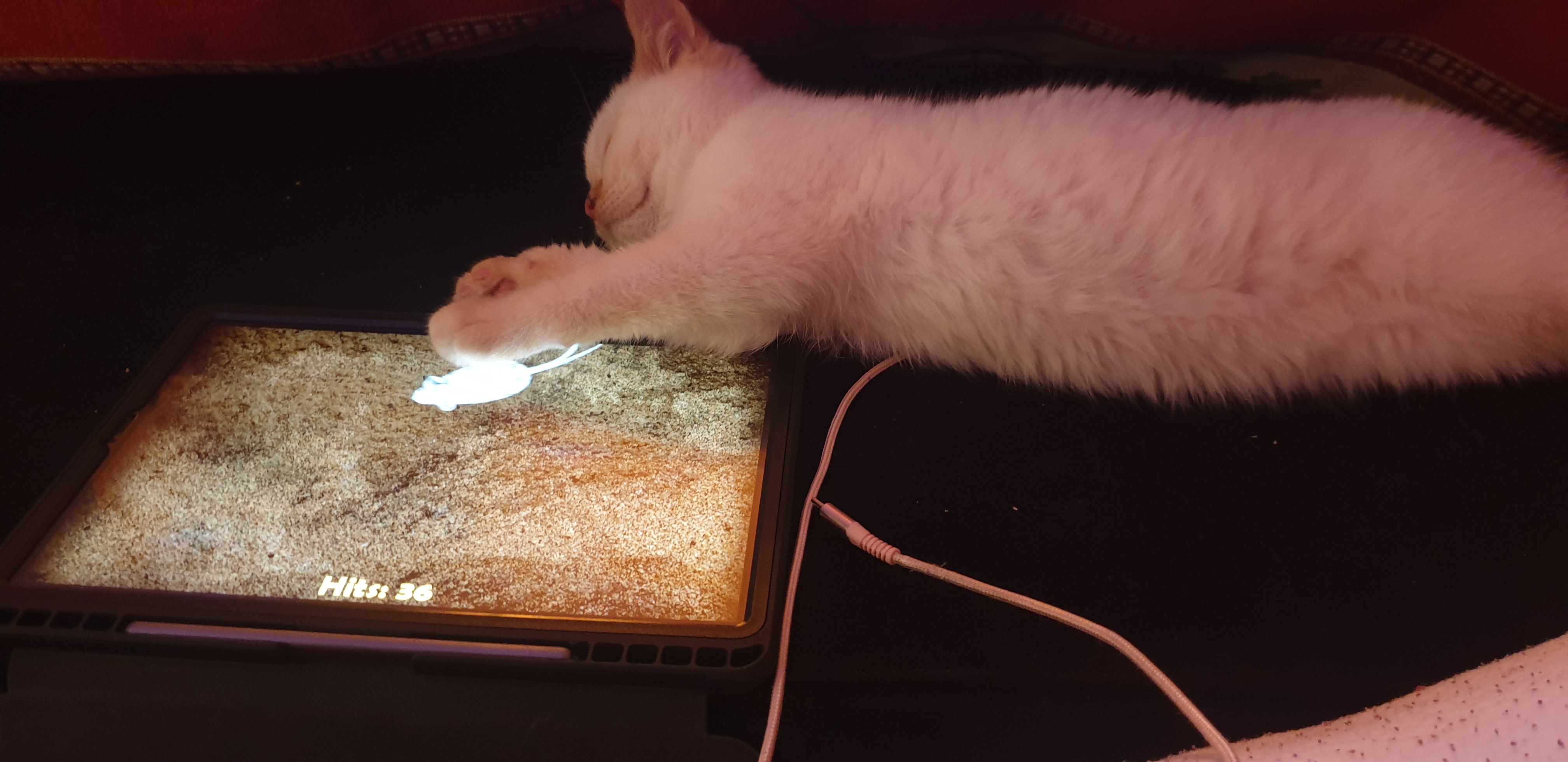 Spieleinheit ist sie nun am schlafen. Unsere andere Katze Yvie ist noch etwas