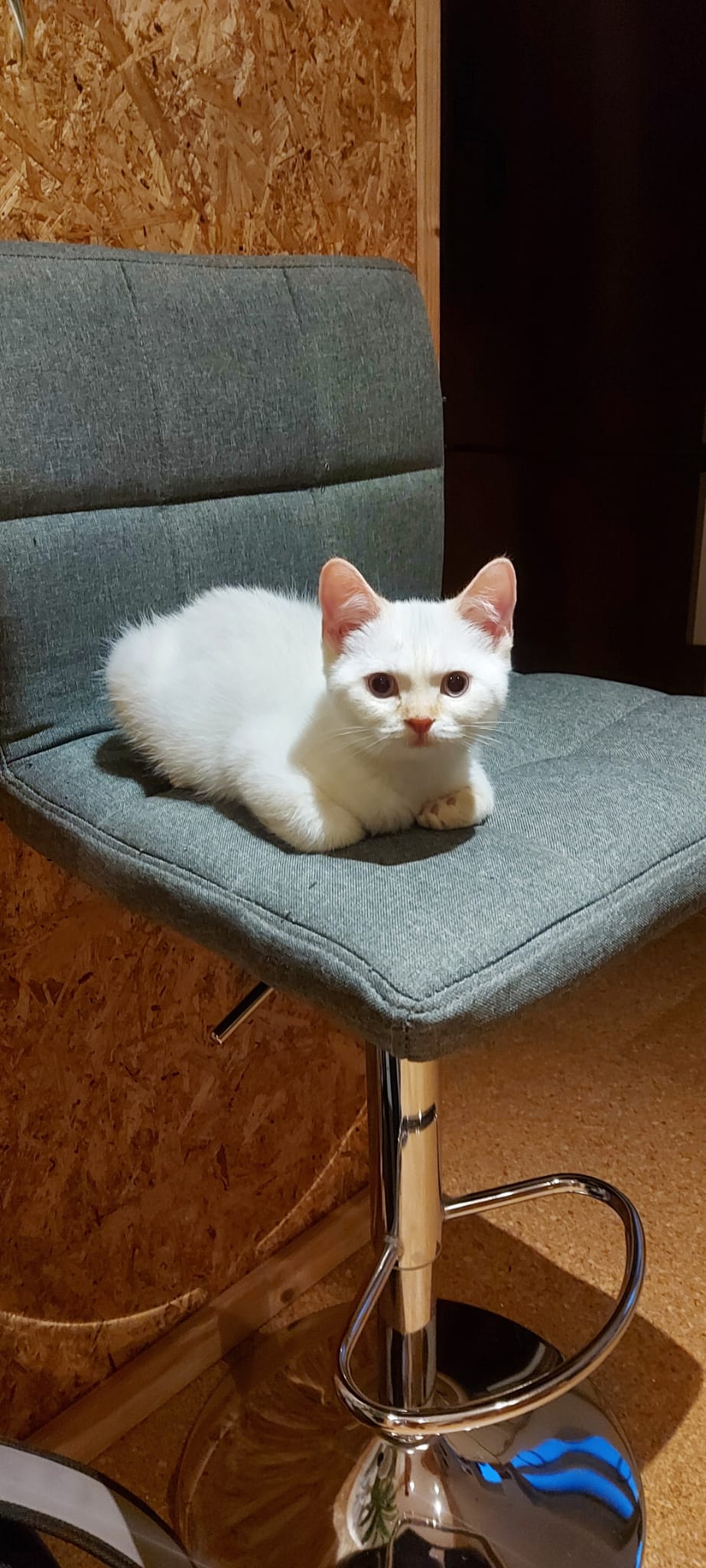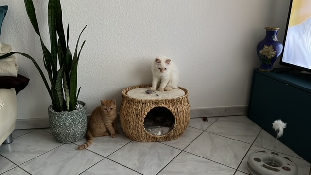 Schlawiner, der weiße Kater ist deutlich ruhiger und zurückhaltender, aber