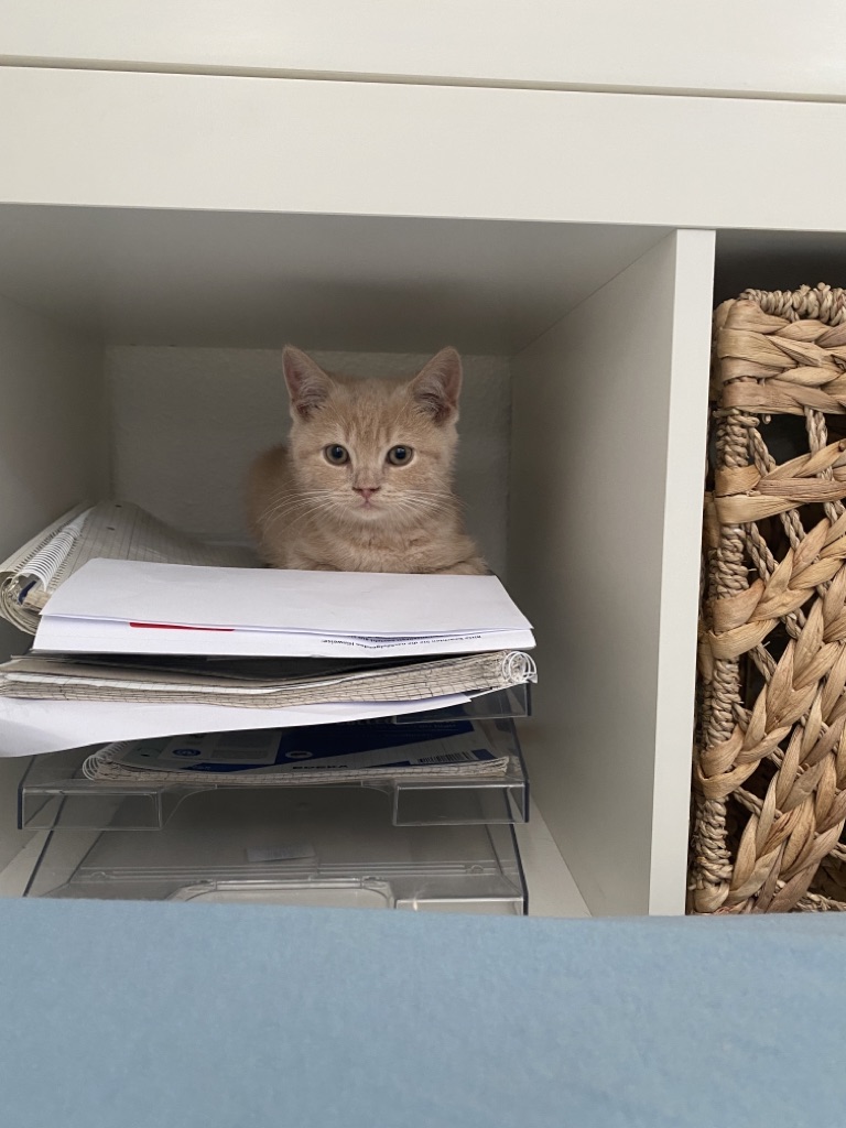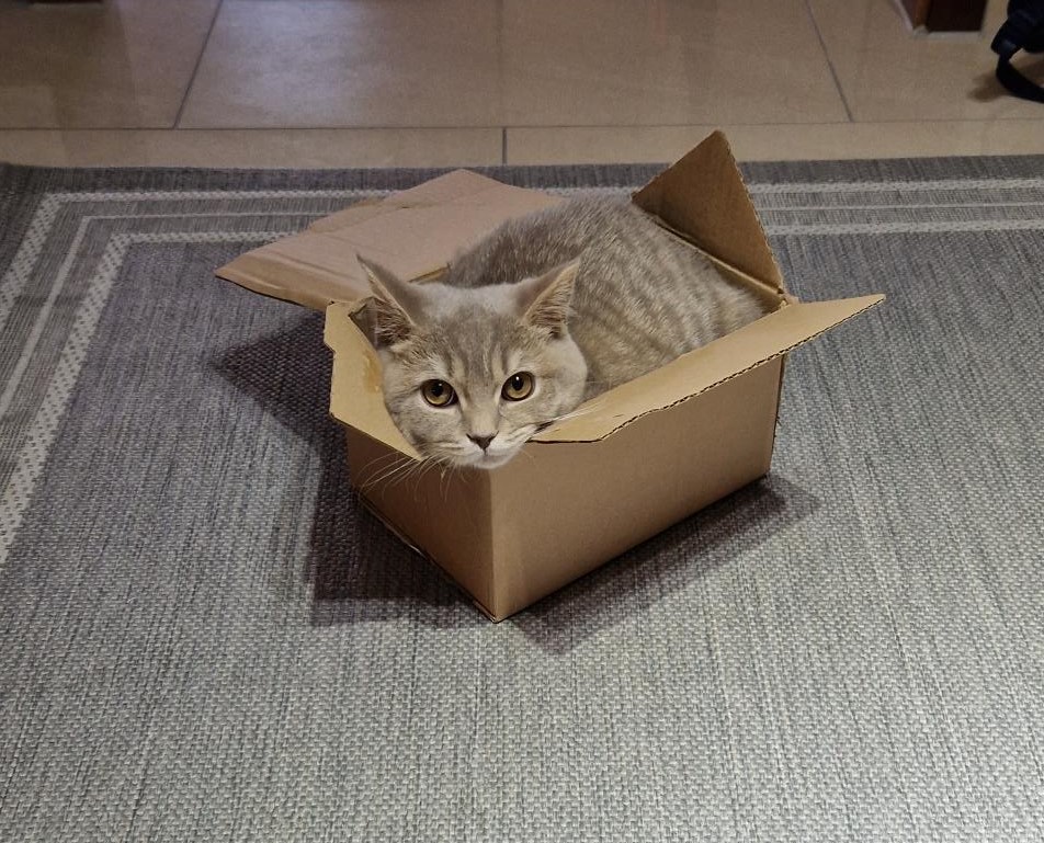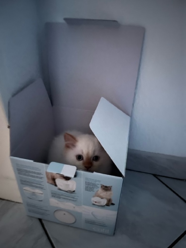 Sie hat bereits gefressen und das Katzenklo benutzt. Nach einer kleinen Erkundungstour