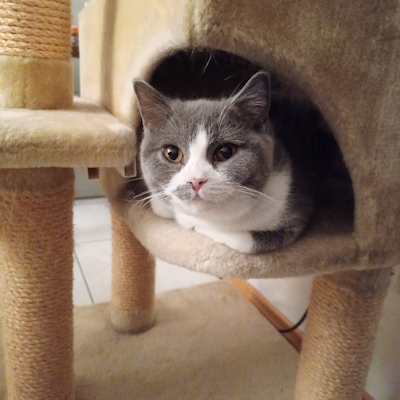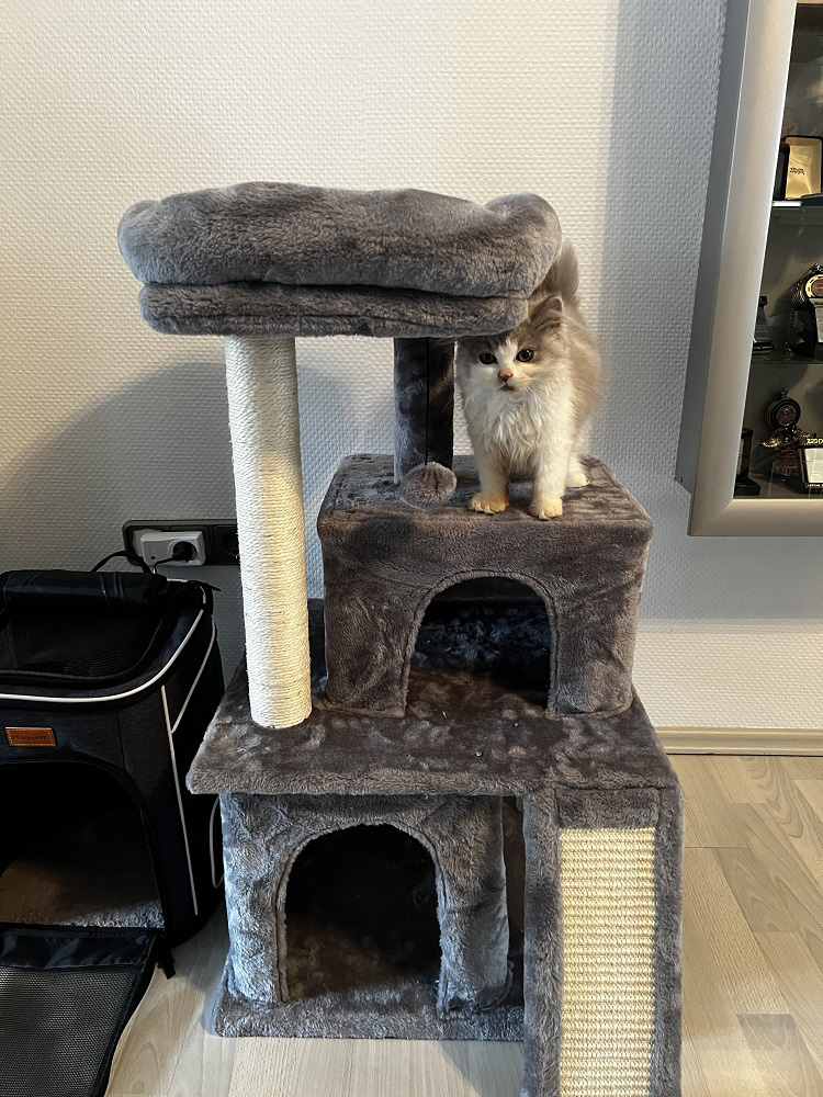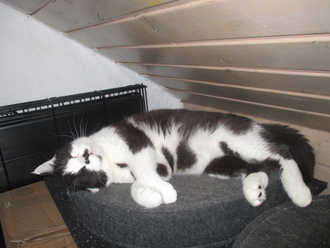 Er mag seinen Kratzbaum als Schlafplatz und stromert mittlerweile durchs ganze