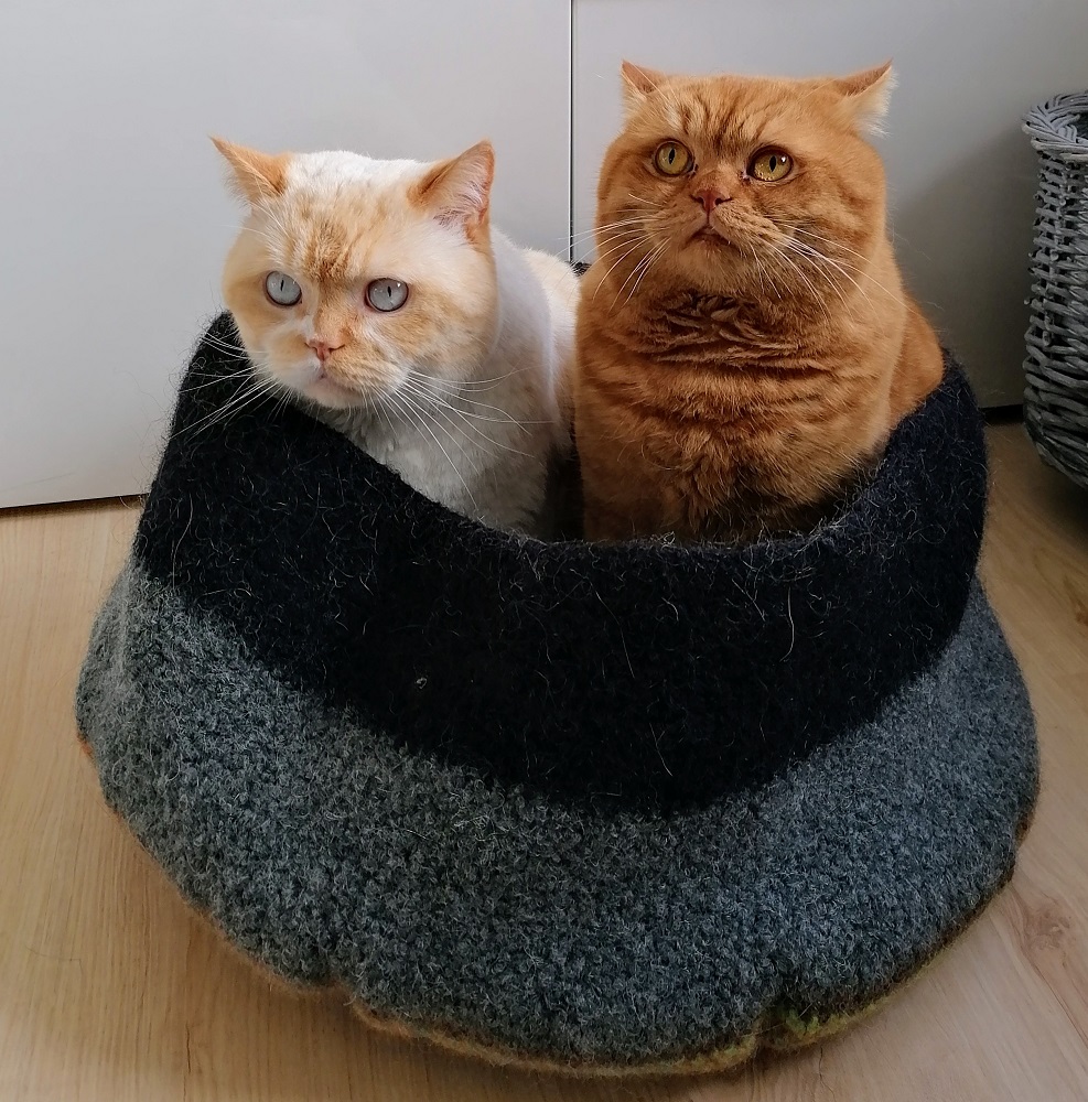 mit Filzwolle zu häkeln. Es gefällt meinen zwei lieben Katerchen