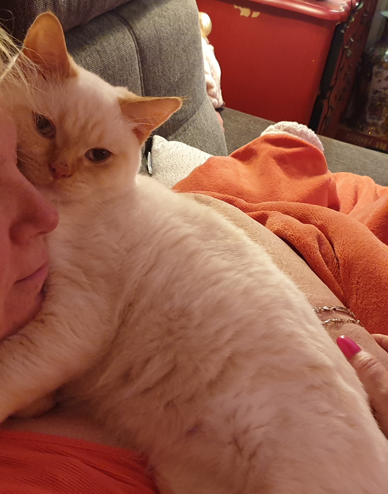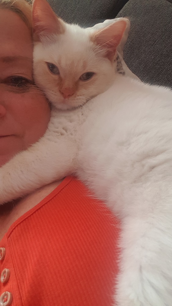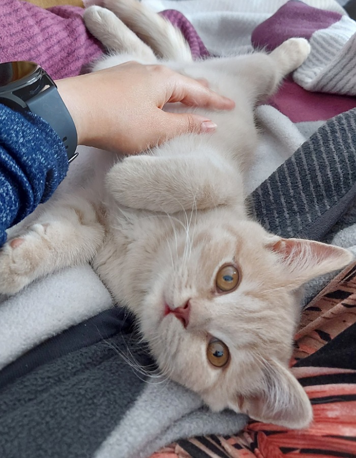 beiden Bildern beim kuscheln mit Emil . Wir haben die kleine, hübsche Katzendame