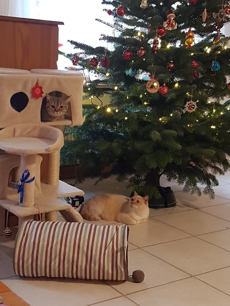 die ersten Vorbereitungen an. Unser Katzenbaum steht schon. Ihnen noch einen