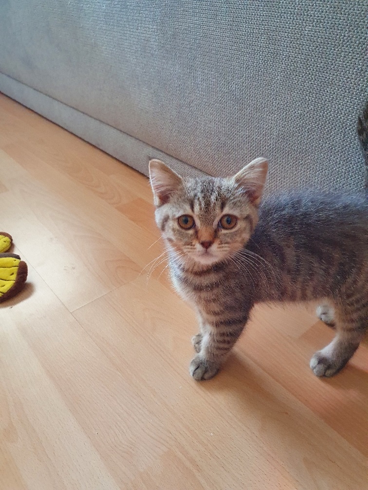 sehr neugierig und verspielt, zu unserer aller Freude auch noch sehr verschmust.